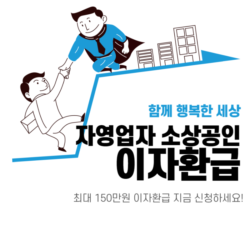 2023년 12월 31일 기준 2금융권에서 연 5%이상~7%미만의 사업자 대출을 받은 사업자 또는 법인 소기업 대상으로 이자 환급 신청을 받고 환급액을 지급합니다. 대출자별로 합산 대출액 1억원까지 이미 납부한 1년치 이자의 일부를 한 번에 돌려줍니다. 환급액은 1명당 평균 75만원, 최대 150만원입니다. 신청을 해야만 지원받을 수 있기 때문에 신청일 확인하셔서 바로 신청하시기 바랍니다. 온라인 신청도 가능하며, 신청방법도 아주 간단합니다.